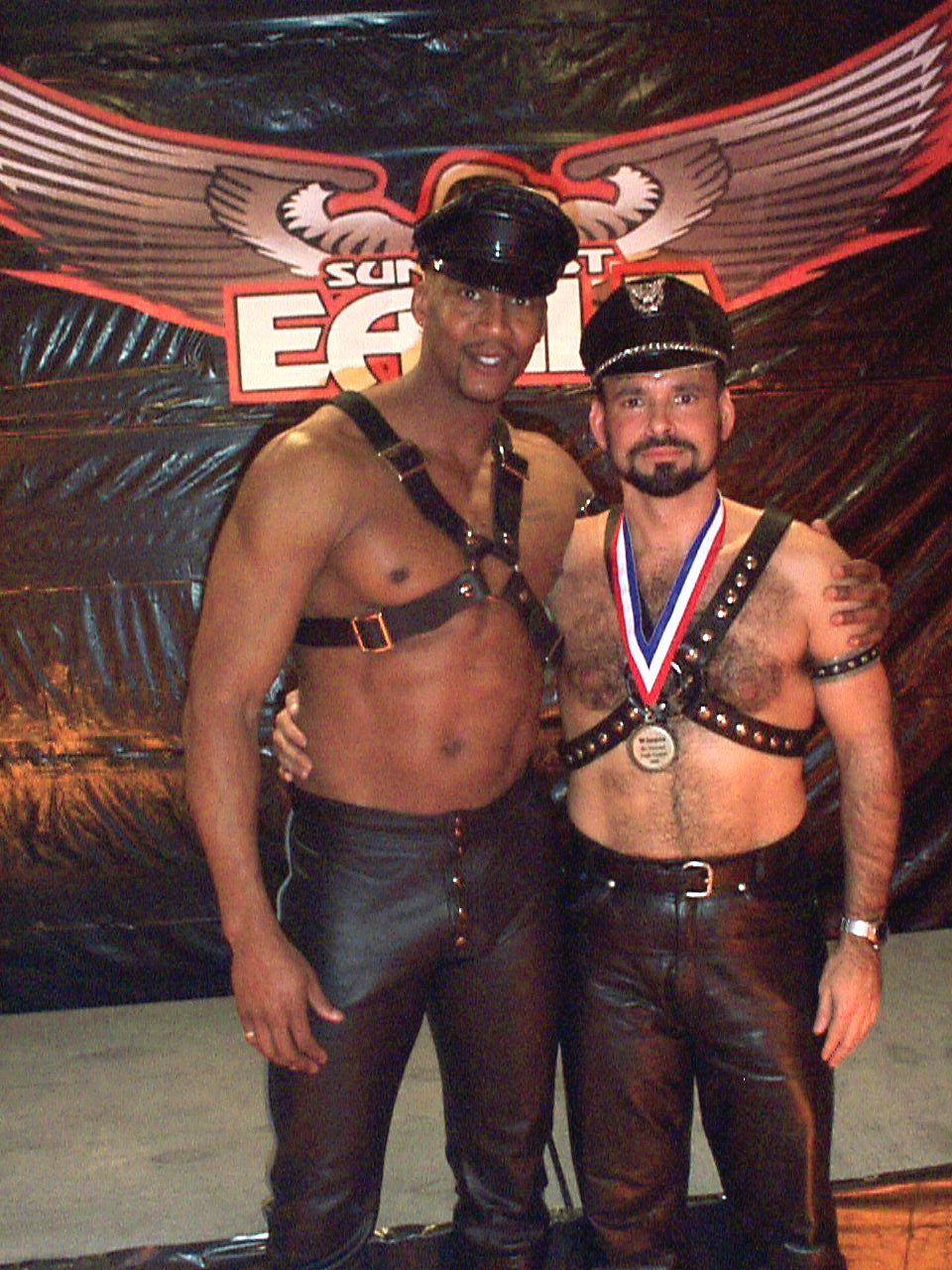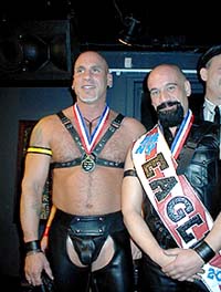 ![]() Robert Napolitano,runner up(L) David Oravez, New York Mr. Eagle Leather 2002 |