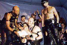 Meanwhile our neighbors to the North (Canada) were holding their Mr. Leatherman Toronto contest. The winner of that contest is Bill Dearsley. He will compete at IML 2002. Frank Nowicki emceed that event.