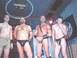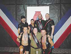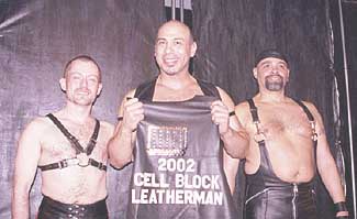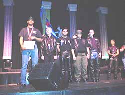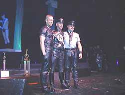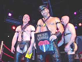 When all the scores were tabulated by tally master Jim Raymond American Leatherman '97, and his assistant "pup" Mullikin, American Leather boy 2001. David Baldwin, Baltimore MD.,grabbed the title of MAL 2002. Jim Shear was first runner-up, and Jack Miller was second runner up. (I mixed the last two up earlier. Sorry for any confusion, Vern.)