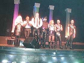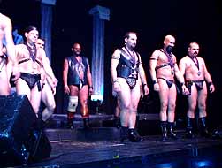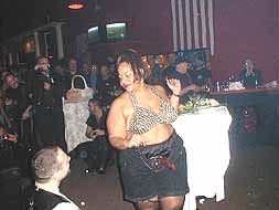 When Sunday rolled around, guests headed to Nations for brunch and the contest. Gary Vandeventer, IMD 2001, produced and choreographed the opening number. It was a knockout. The number included Carl Baldwin and Wayne Nesbitt and several local drag personalities. Of course emcee Frank Nowicki, was not just simply introduced. He appeared on stage being carried in a HUGE throne-type chair, carried by two hot boys! Leave it to the "Diva" to make an entrance.