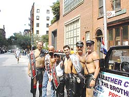 He pulled off a first for the city, when he combined three leather titles to ride in the Pride march. Mr. Lure, and NY Eagle Mr. Leather 2002 David Oravez and Intl. Bootblack 2002 Michael Lanzini. The owners of both bars assisted in making this a reality. Leather men and women from everywhere marched in support behind the three title holders.