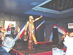 This year, the introduction of judges and contestants was held at the host hotel on Friday night. A very wise move. Needless to say the hotel lobby was packed. Frank Nowicki was the emcee for the weekend. He was funny and so professional as always. The judges were Annie Romano-Blas, MS, World, Jim McGlade, Leather Rack owner, Mike Zuhl, President of DCI Productions, Joni Perry, IMSL 2001, Steffan Mueller, IML 2001, Vern Stewart, The Wicked Witch, and outgoing MAL Michael Marino. The wonderful baskets that were given to each judge with every goody imaginable, were a real treat. So thoughtful and so appreciated.